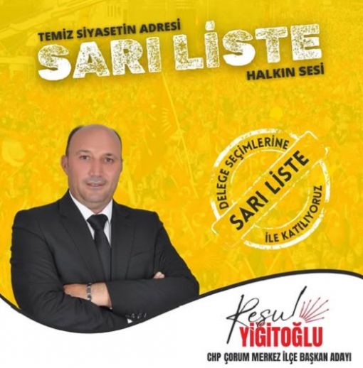 - Çorum Merkez İlçe'de 17 Ağustos'ta Kale Mahallesi ile başlayacak delege seçimlerinde; Resul Yiğitoğlu'nun Sarı Listesi ile Ali Çan'ın başkan adayı olduğu Mavi Liste yarışacak.