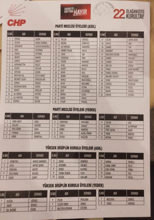 - Cumhuriyet Halk Partisi (CHP), “Darbeye, kayyıma hayır” sloganıyla düzenlediği 22’nci Olağanüstü Kurultayı’nı Ankara’daki Nazım Hikmet Kültür Merkezi’nde gerçekleştirdi. Parti içinde kritik değişikliklerin yaşandığı kurultayda, mevcut yönetime karşı güven tazeleme süreci de işletildi.