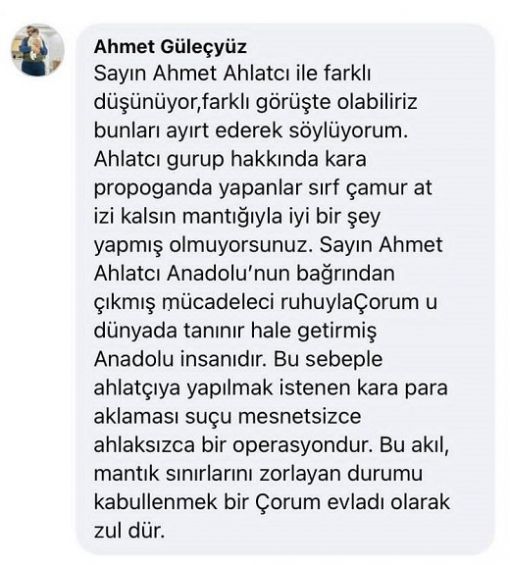 - Merkezi Çorum’da bulunan ve Türkiye’nin dev holdingleri arasında yer alan Ahlatcı Holding’in Yönetim Kurulu Başkanı Ahmet Ahlatcı, bazı medya organlarında yer alan "yurt dışına kaçtığı" veya "yurt dışında olduğu" yönündeki iddialara doğrudan yanıt verdi. Her fırsatta memleketine olan bağlılığını ve yatırımlarını vurgulayan Ahlatcı: “Hakkımda çıkan spekülasyonlar asılsızdır. Yurt dışına çıkmadım, Çorum’dayım. Her zaman olduğu gibi, işimizin başındayız. Üretmeye ve istihdam sağlamaya devam ediyoruz,” ifadelerini kullandı.