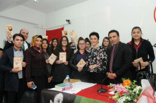 Yazar Mehtap Altan yaptığı konuşmada öğrencilere kitapları hakkında bilgi vererek, kimi zaman şiirler okudu, kimi zaman ise hayatın içinden örnekler vererek söyleşi yaptı.